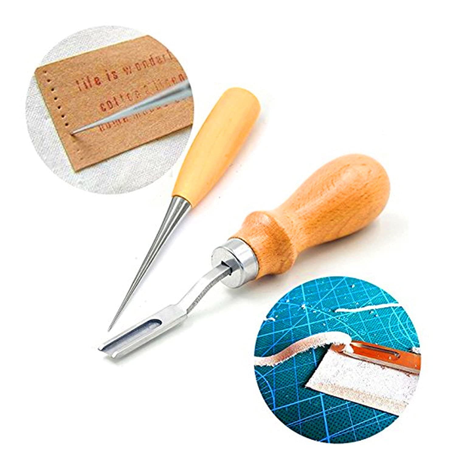 -18pcs Set Leather Tools (Include:Awl, Polish Tool, Skiving Knife, Punch Tool, Chisel, Skiving Tool and so on...)