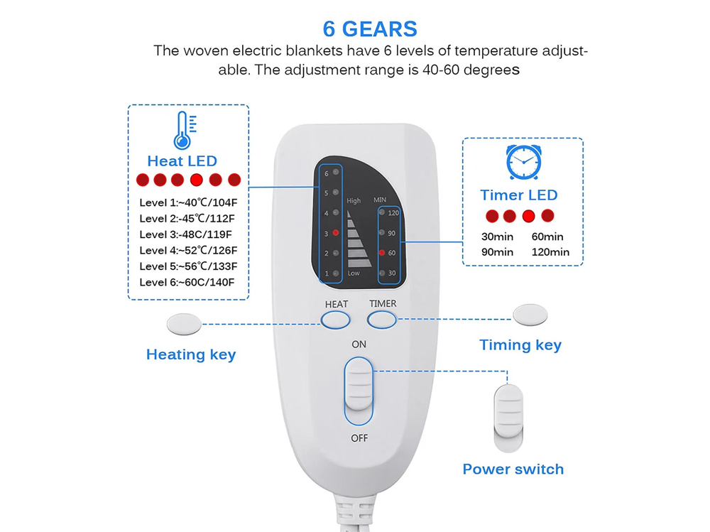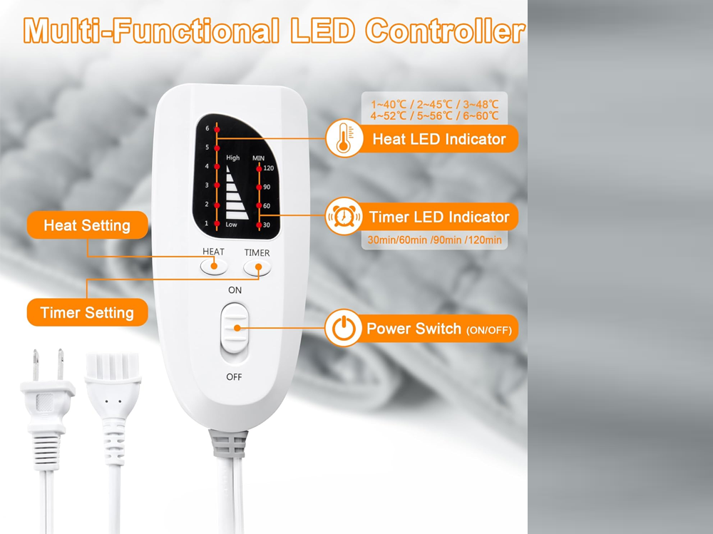 Electric Hot Heated Blanket – Adjustable Temperature & Timer with LED Controller for Pain Relief The Electric Hot Heated Blanket offers customizable warmth for muscle pain relief, relaxation, and stress reduction. Featuring 10 temperature settings from 30°C to 70°C, the Electric Hot Heated Blanket adapts to your comfort needs. With 3 time...
