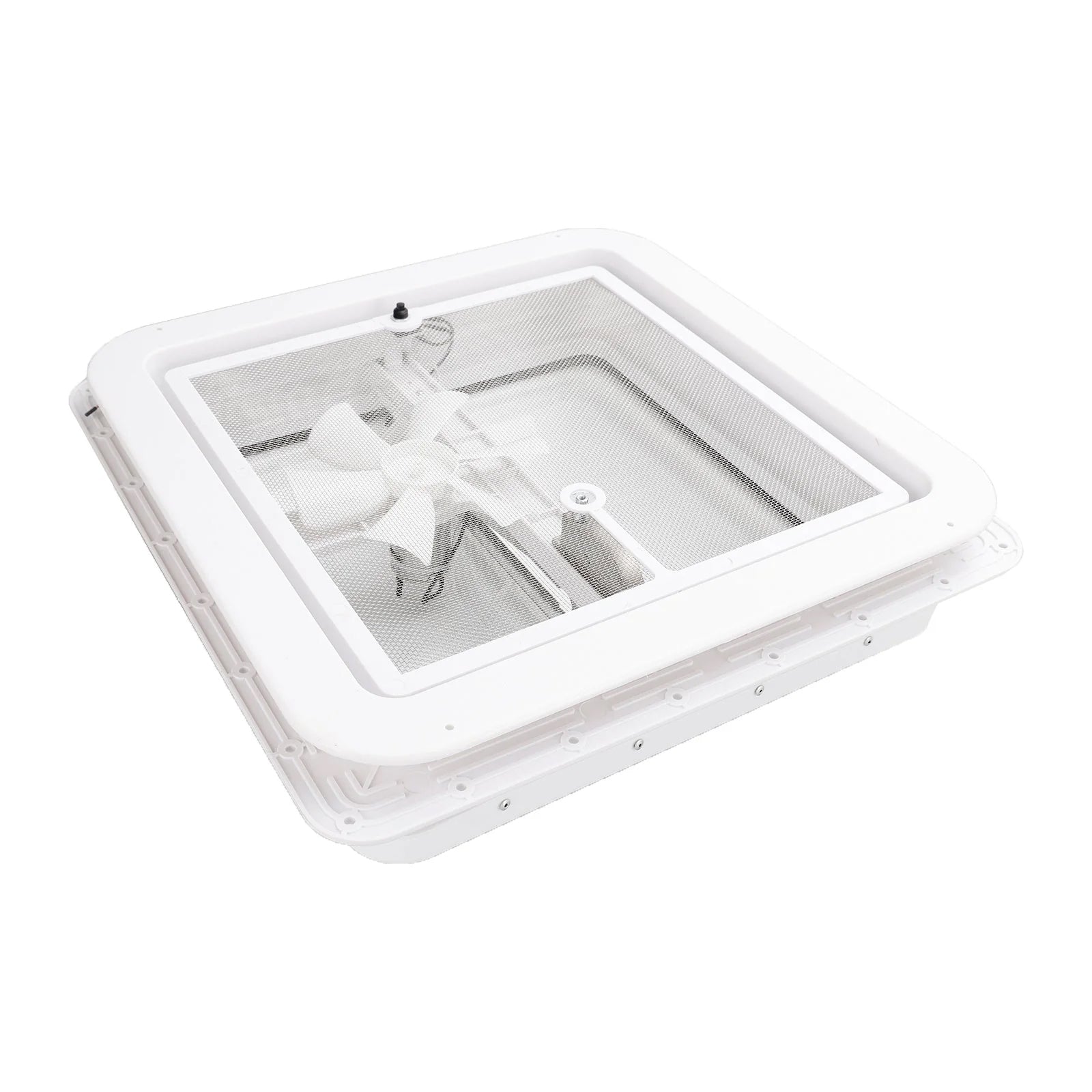-This RV roof vent fan provides a fantastic air circulation for RV, trailer camper and other vehicles, helps to lower indoor temperature & reduce smell from food, smoke, waste, pets, etc. It is a great choice to replace your old cracked roof vent whose size is 14" x 14".