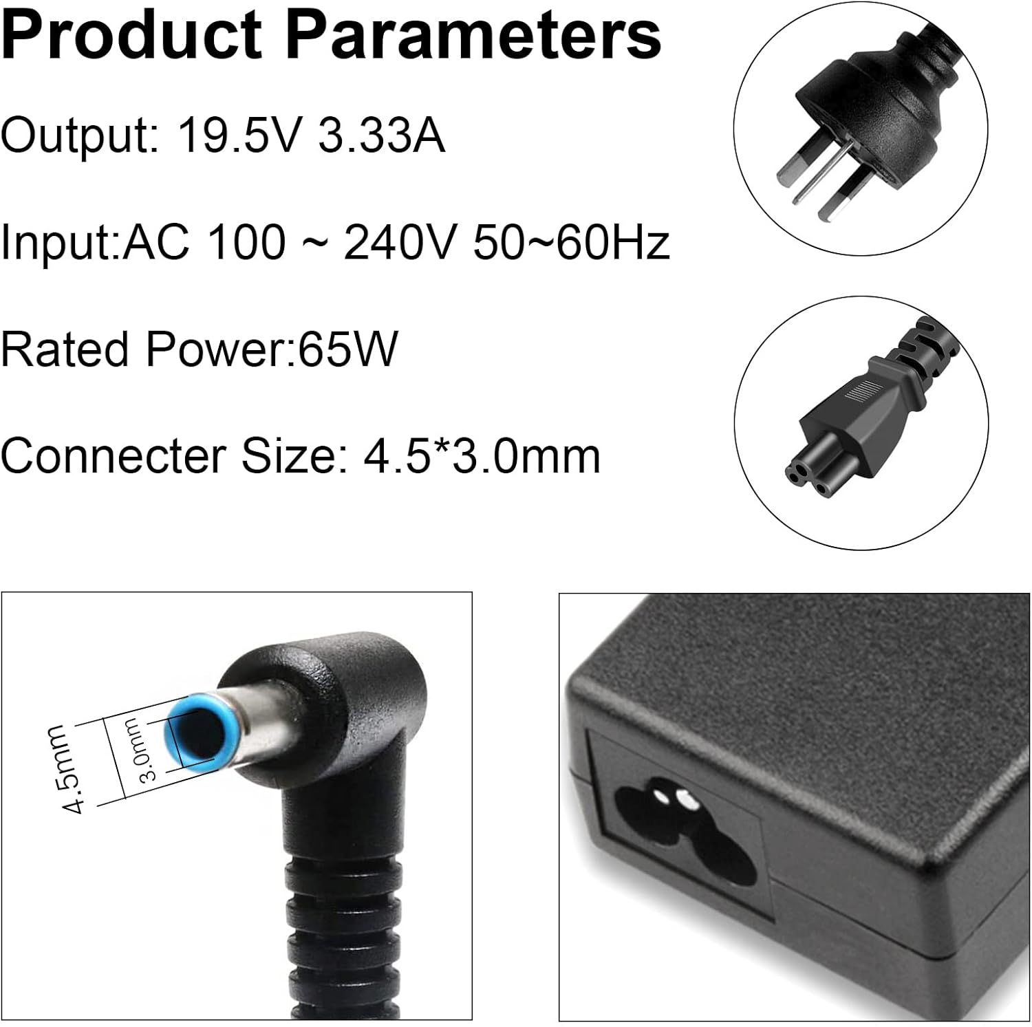 High Quality Compatible HP Laptop Charger AC Adapter 19.5V 3.33A 65W (3.0mm x 4.5mm)
