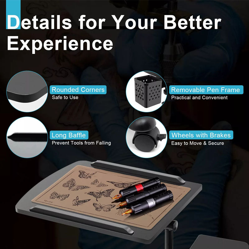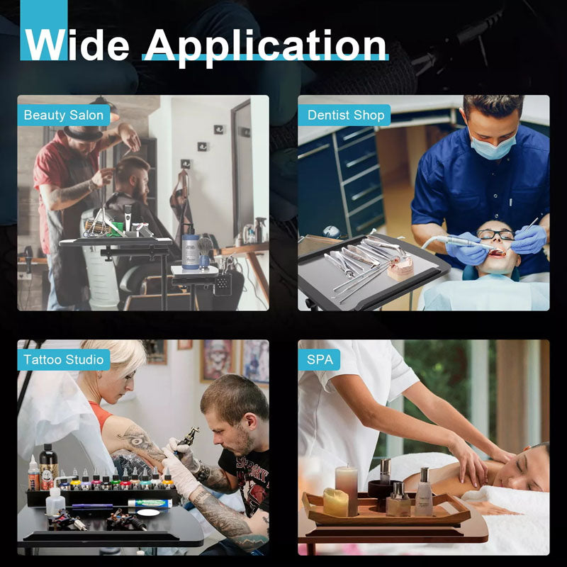 Portable Mobile Tattoo Work Station Arm Rest Stand Tattoo Workbench Stand with Wheels Desk Table Workbench Tray for Home Tattoo Studio Beauty Salon Black, Height Adjustable (Dual Workbench)