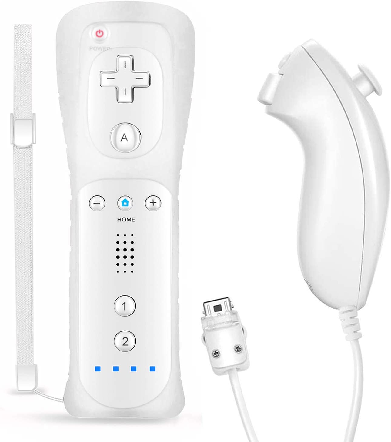 Wii Remote Controller With Silicone Case, Wristband and Nunchuk Controller for Nintendo Wii