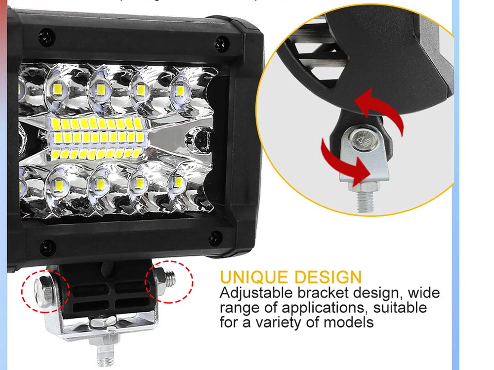 LED Light Bar 120WLED off-road modified lights LED Light BarLED Light Bar parameters:Light type: Spotlight/Floodlight/Mixed lightColor temperature: 6000KBeam Angle:Spot 30 degree(30°)+Flood 60 degree(60°)Brightness: 10800LMPower: 120WNumber of chips: 40pcs * 3WMaterial: Aviation aluminum alloy die-casting shellColor: Black LED Light BarLifetime:...