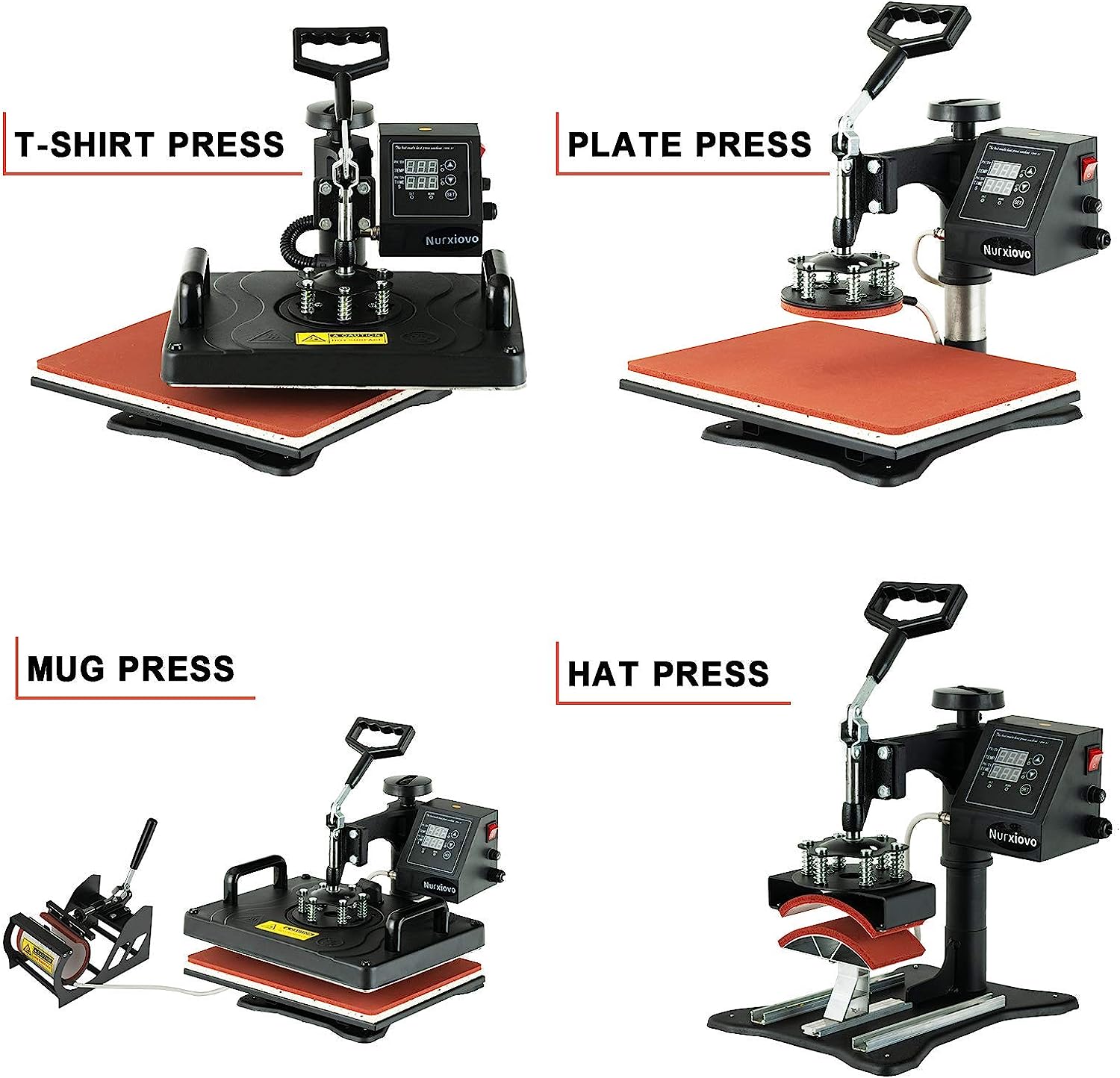 Professional 8-in-1 Digital Heat Press Machine Transfer T-Shirt Printer with 12"x15" Plate, Mug, Hat, and Plate Attachments