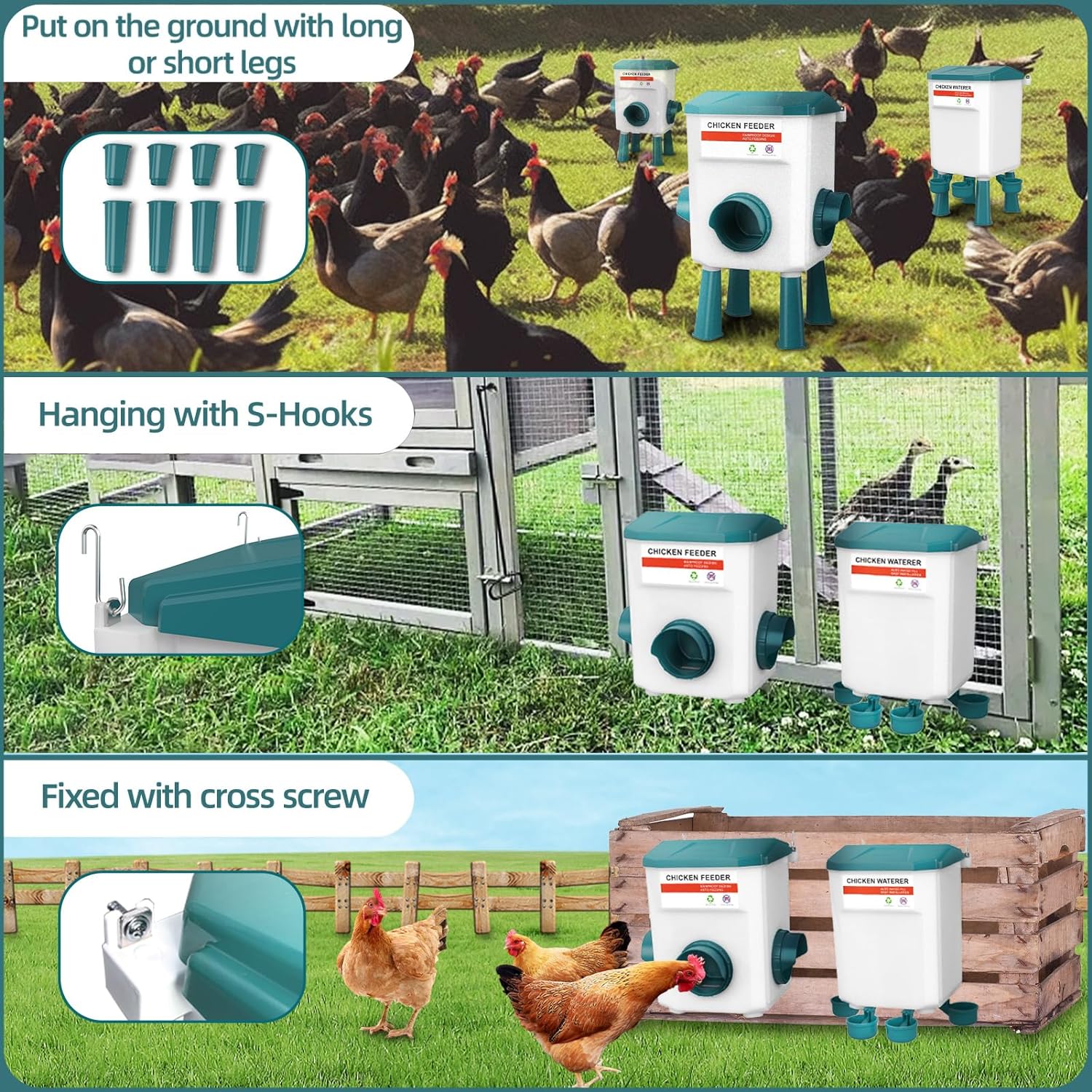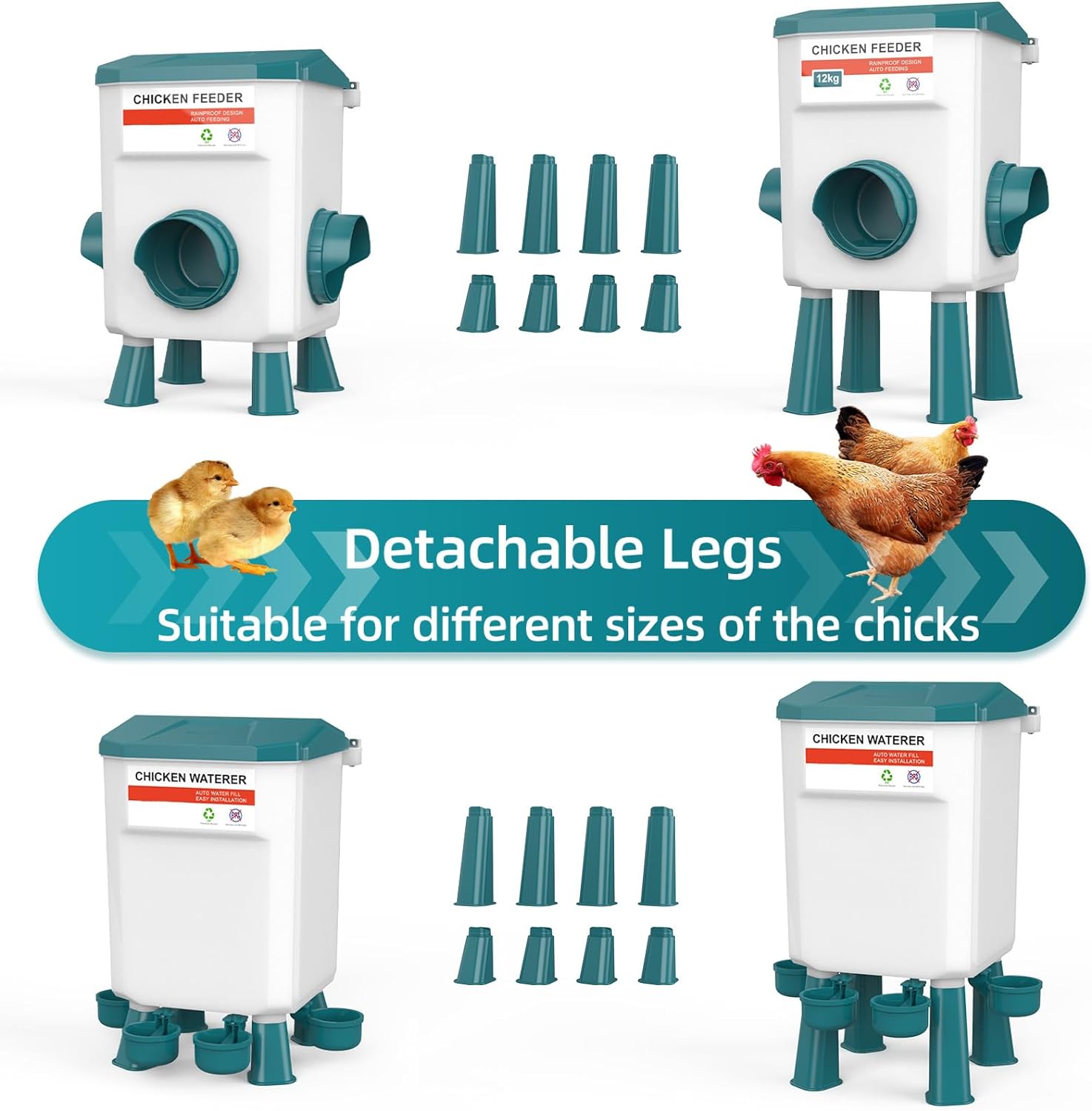 -Each set feeder and waterer has equipped 8* legs (4* long , 4* short),It can be changed according to the growth of the .