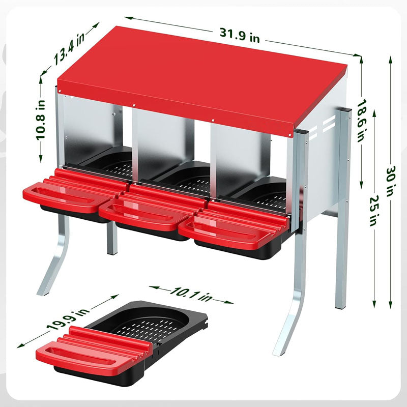 -Increase Egg Production: Provide a safe space for your hens to comfortably nest with the Ruralty 3 Compartment Chicken Laying Boxes with Perches