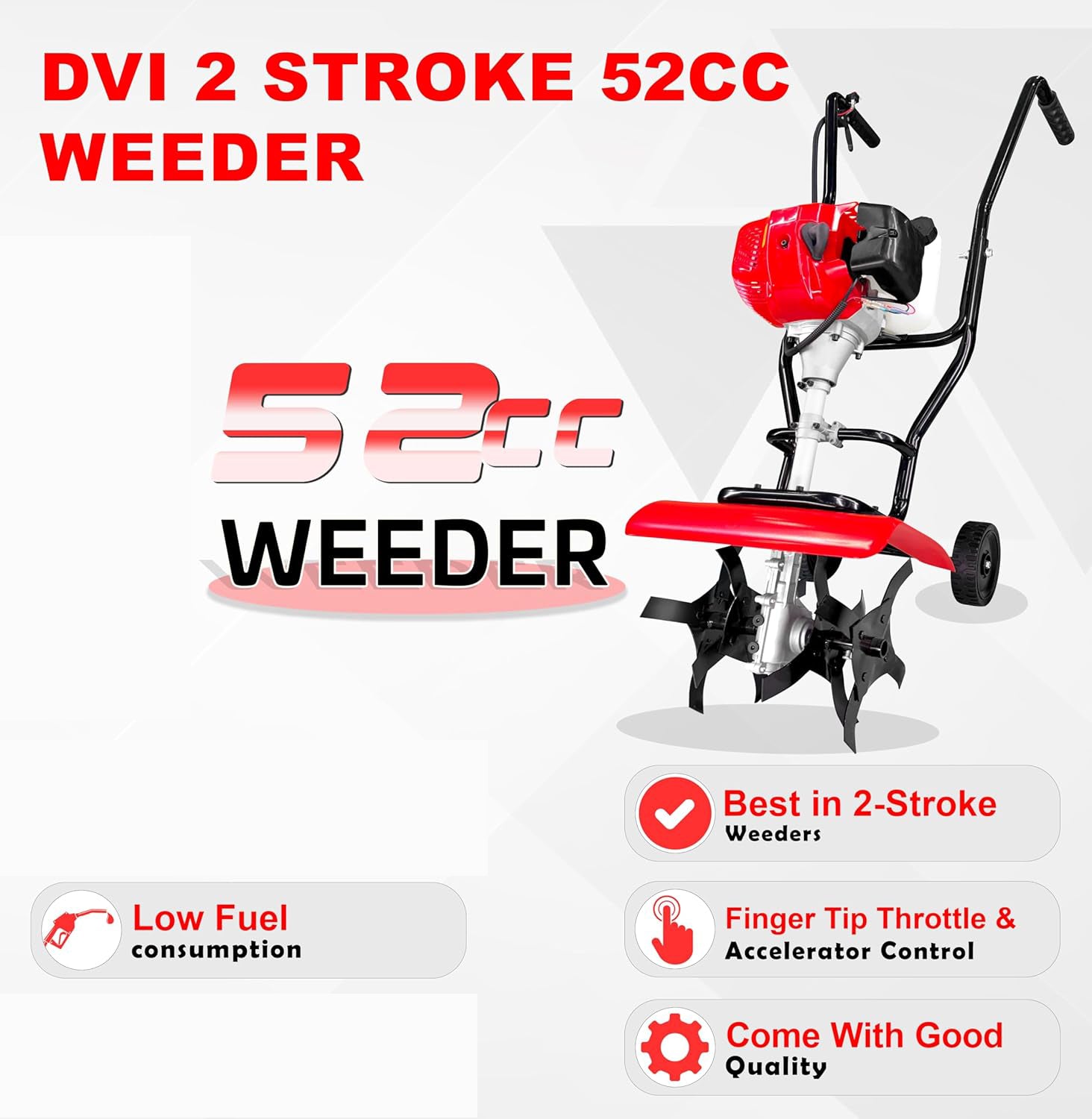 - Fuel Efficient: Operates with a petrol and 2T oil mix (40ml 2T Oil with 1 liter Petrol), offering remarkable fuel efficiency and cost-effectiveness.