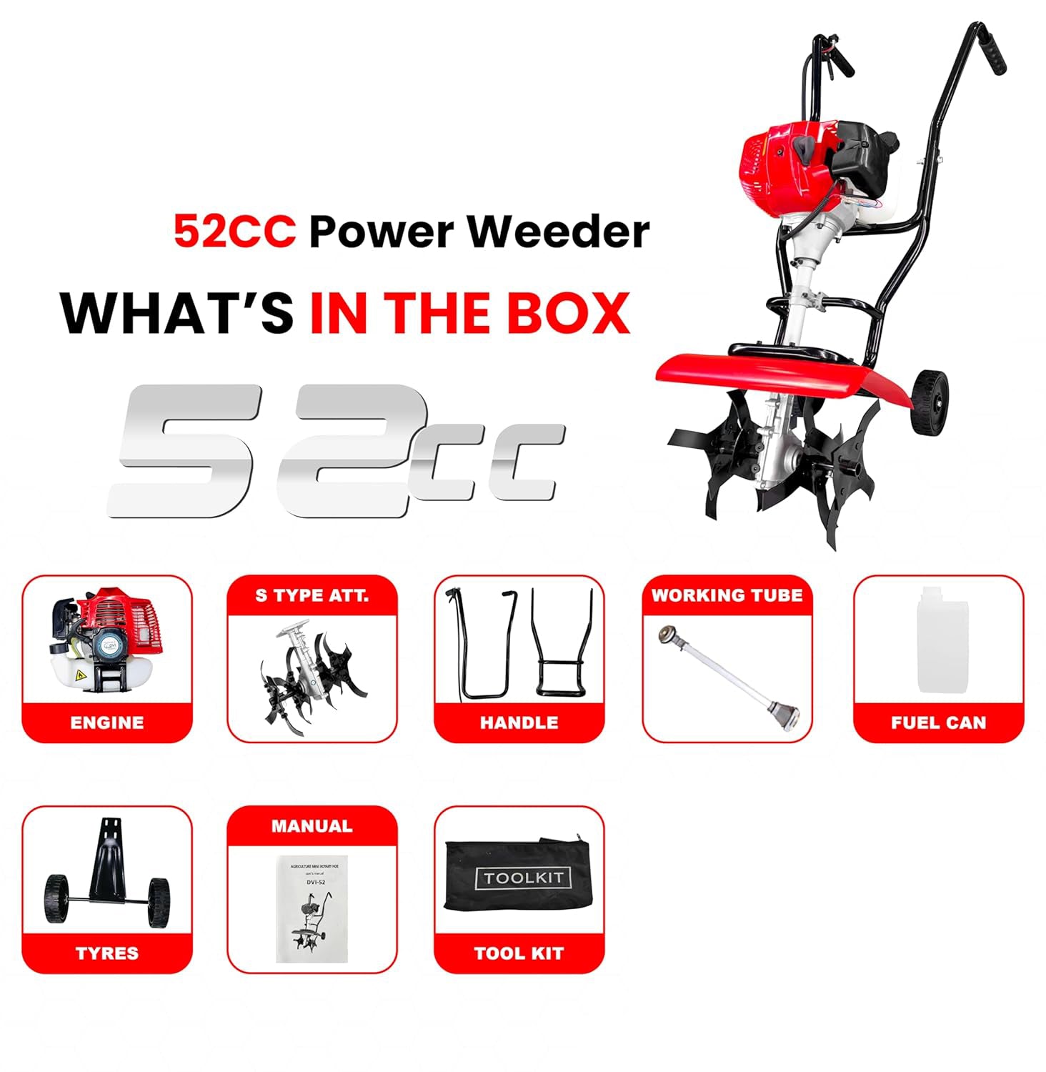 Don't miss out on the opportunity to enhance your gardening and farming efficiency. Invest in the 52CC Tiller/Cultivator/Weeder today and experience the difference in soil preparation and cultivation. Order now and take the first step towards a more productive and efficient gardening experience!