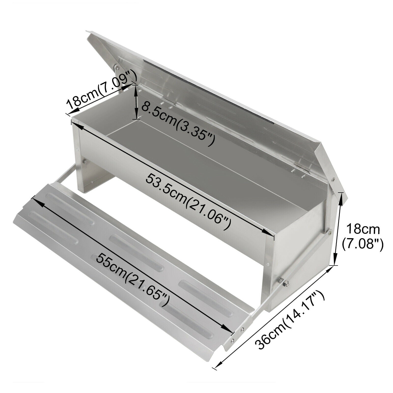This Automatic Chicken Feeder provides a protected way of feeding your backyard chickens on demand. The lid can be opened when chickens (minimum 500gsm) step onto the platform. Chicken Feeder clever design allows chickens to access their food when hungry.