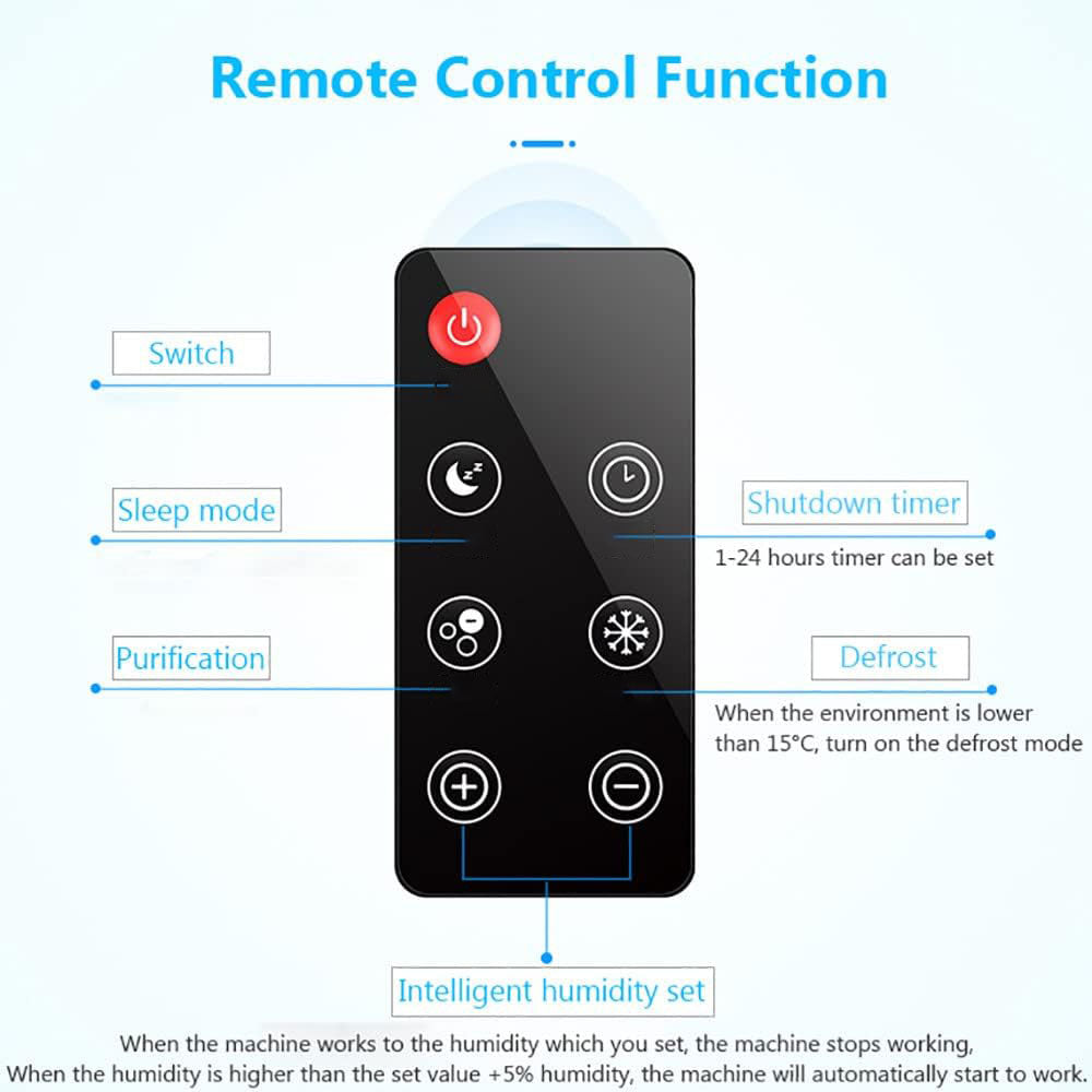 Remote & LCD Control: Set dehumidifying time, fan speed, and mode easily with the remote or built-in control panel.