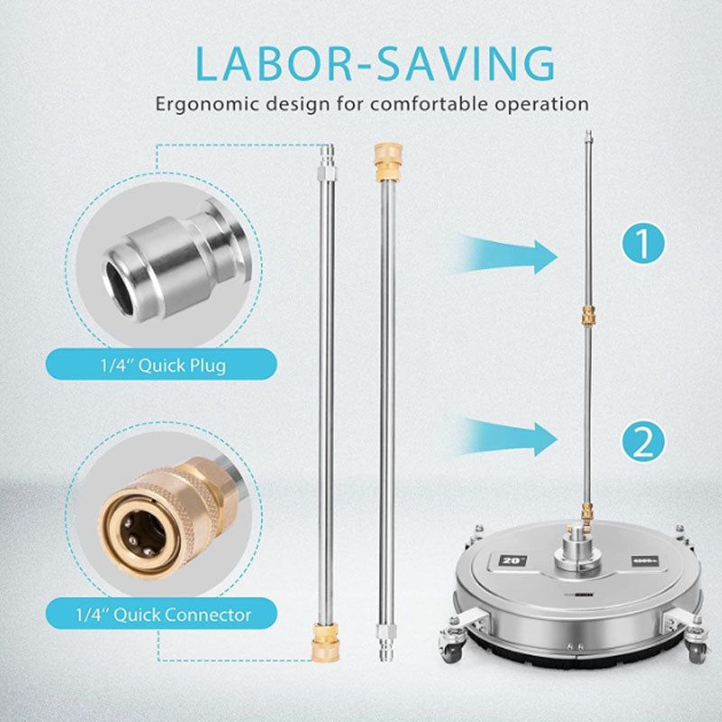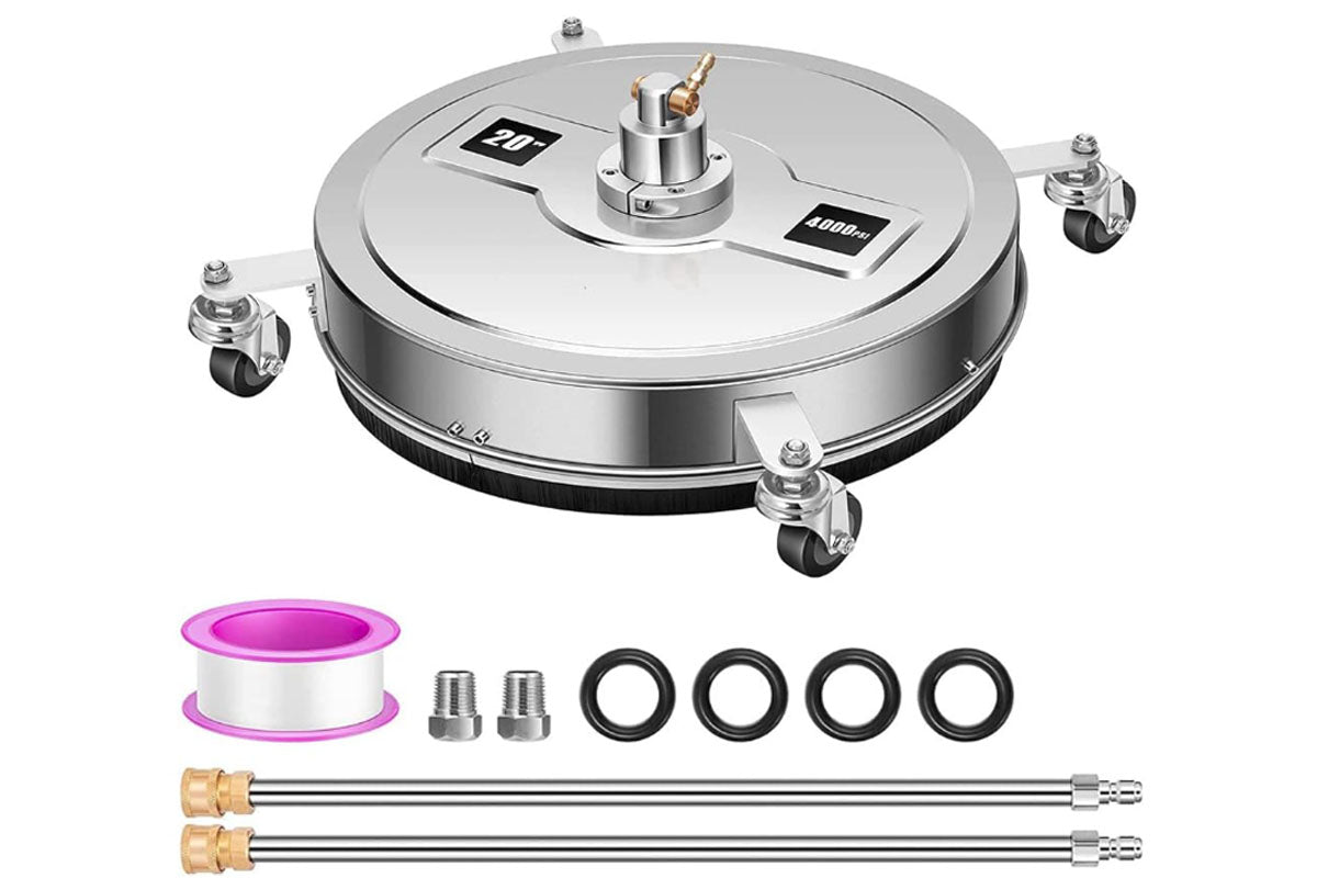 The 20" pressure washer surface cleaner is a powerful and efficient tool designed for residential use. This stainless steel surface cleaner with wheels is perfect for cleaning driveways, patios, sidewalks, and other surfaces with ease.