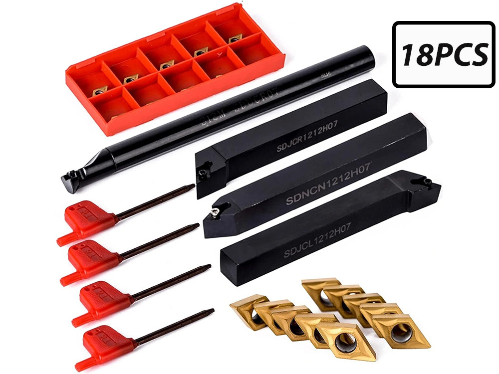 This 18-Pcs Machining Lathe Boring Bars Holder is a versatile and reliable tool for machining and cutting tasks. With its double-sided chips and high grip strength, it offers clear speed advantages in cutting off large margins and processing, while its good toughness and hardness ensure long service life.