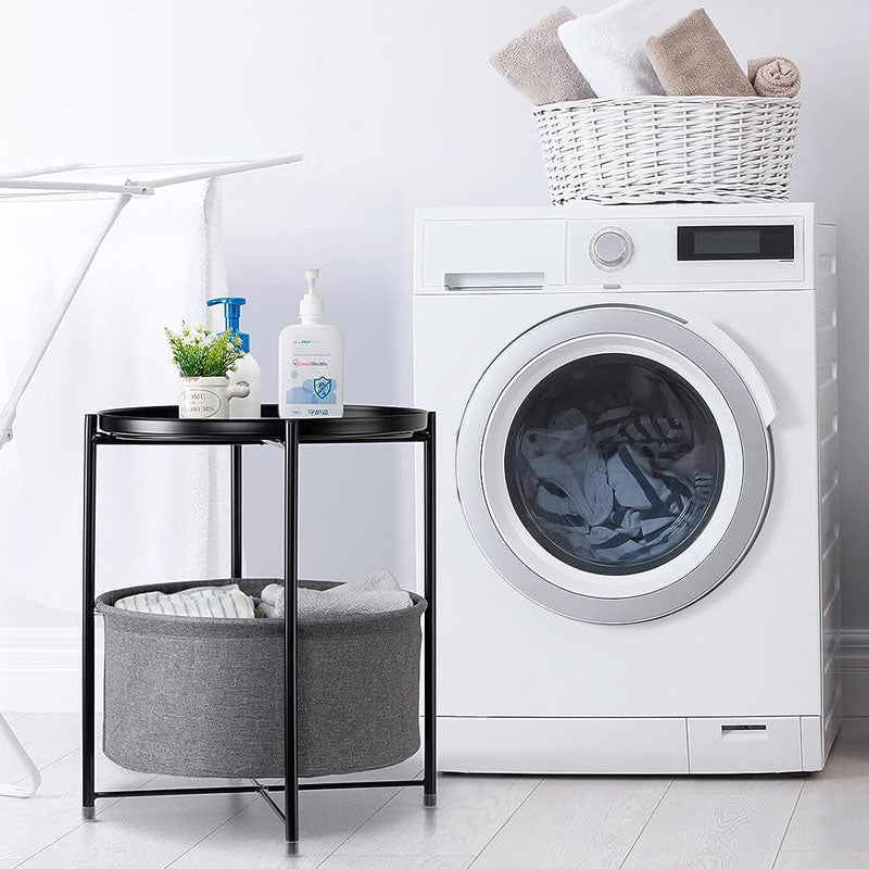 -Handy Storage: This side table top with reinforced edge can hold books, remote, phone, photos etc, and it can also be removed and used for serving food and tea. The cloth basket offers extra storage for blankets, cushion, soft toys, magazines.