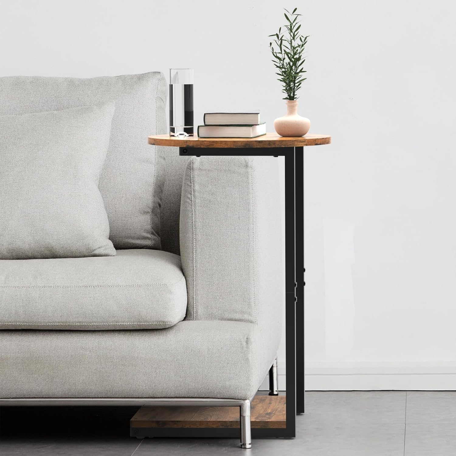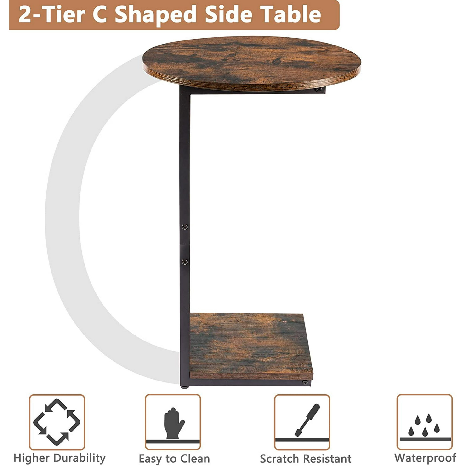 C Shaped End Table Side Table 2-Tier Side Table Nightstand/Small Oval Top Side Tables Accent Coffee Table for Living Room Bedroom Office Small Space (Rustic Brown)