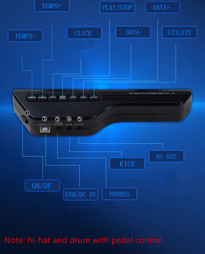 With 7 silicon drum pads including Tom/Snare/Hi-Hat/Crash/Ride, making excellent sounds and simulating real beating effect.