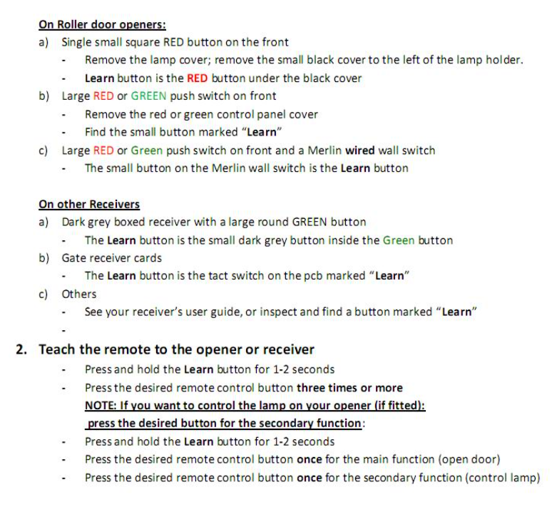 Merlin M842 M832 M844 Garage Remote Replacement