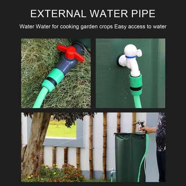 -CONVENIENT The collapsible water collection container has multiple water outlets that allow you to connect a garden hose or fill a watering can.