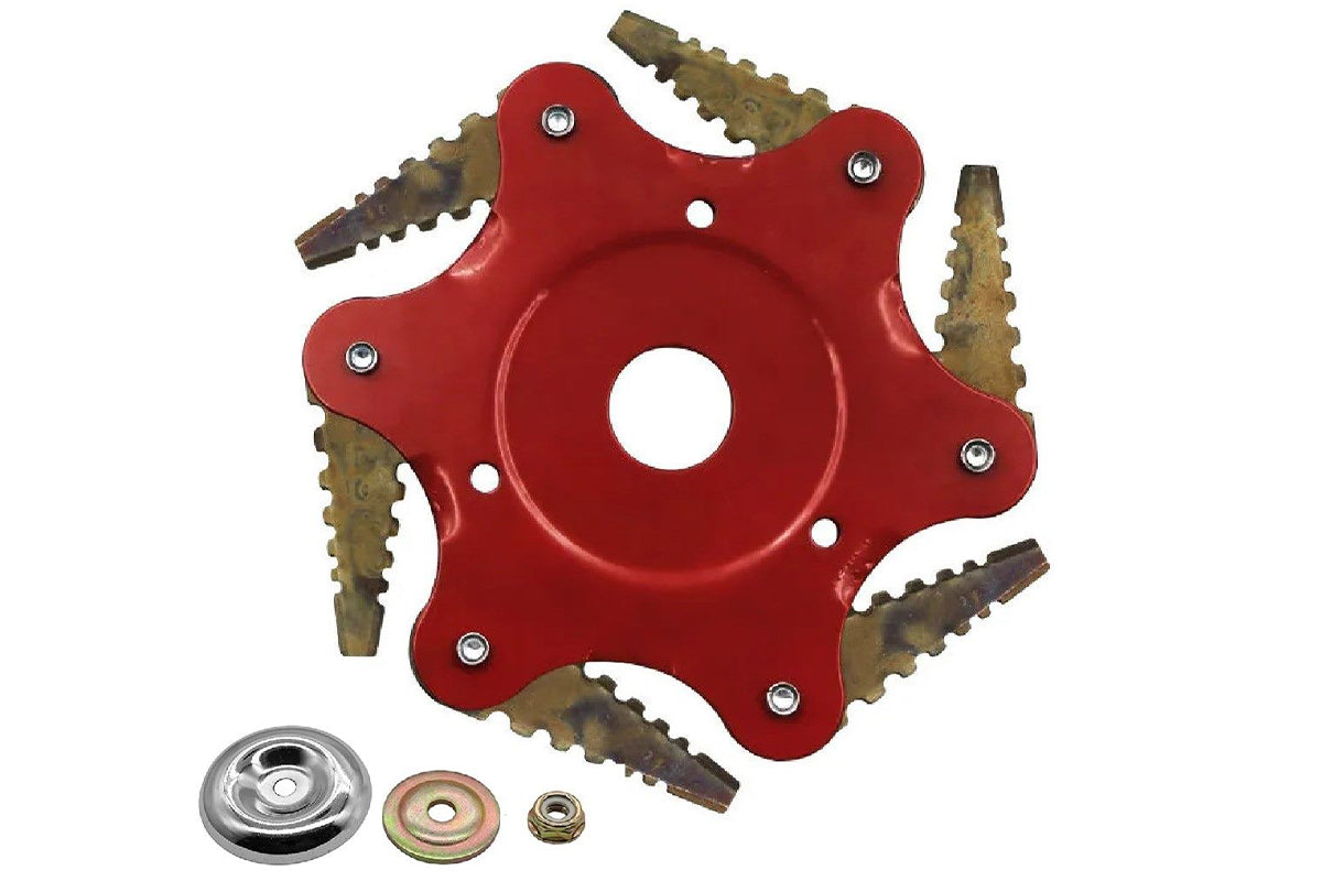 Weed Eater Brush Cutter Head with Steel Blades and Adapter Kit, a versatile and durable tool for your garden maintenance needs. This listing includes one set of 6 steel razor blades trimmer head along with adapter kits, making it an essential addition to your gardening toolkit.