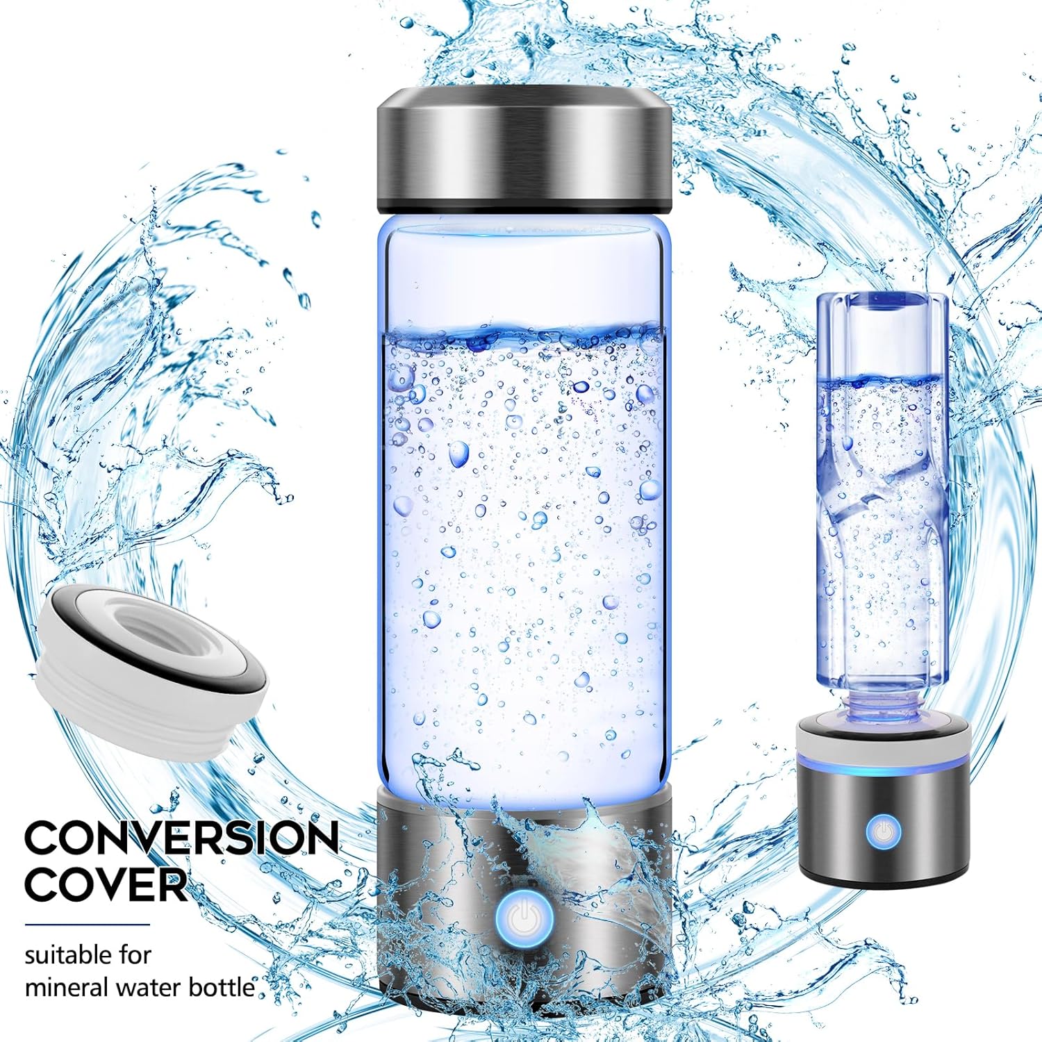 Hydrogen Water Bottle, 420ml Rechargeable Hydrogen-Rich Water Bottle,Portable Hydrogen Water Ionizer Machine,Rechargeable Hydrogen Rich Water Glass Health Hydrogen Water Bottle.