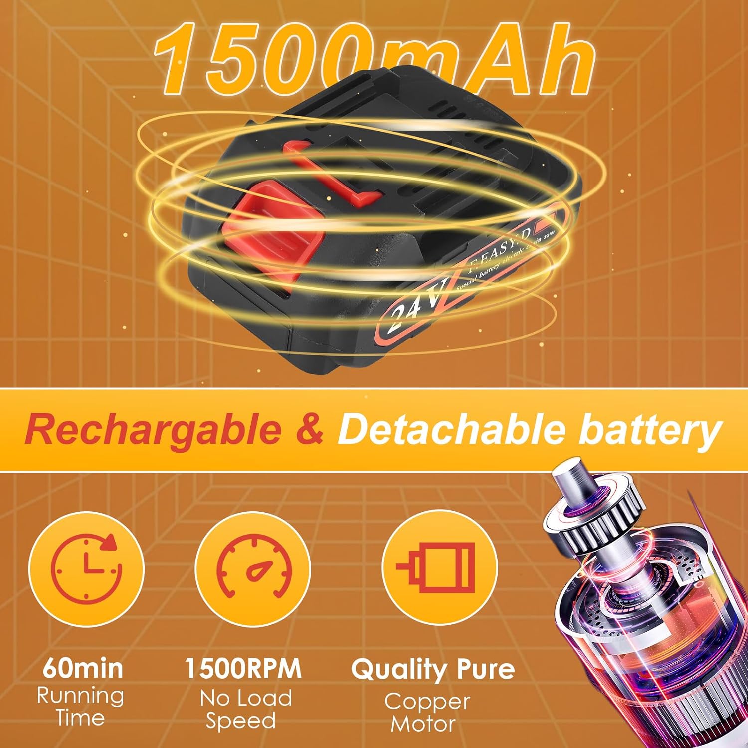 - Dual Batteries: Two high-capacity 1500mAh lithium-ion batteries provide up to 1 hour of cordless operation.
