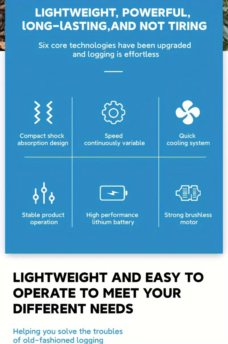 Easy to Install & One-Hand Operate: Install the cordless chainsaws according to the installation method on the picture, then adjust the tightness of the chain. Very suitable for women and the elderly will not feel tired after a long time of use.