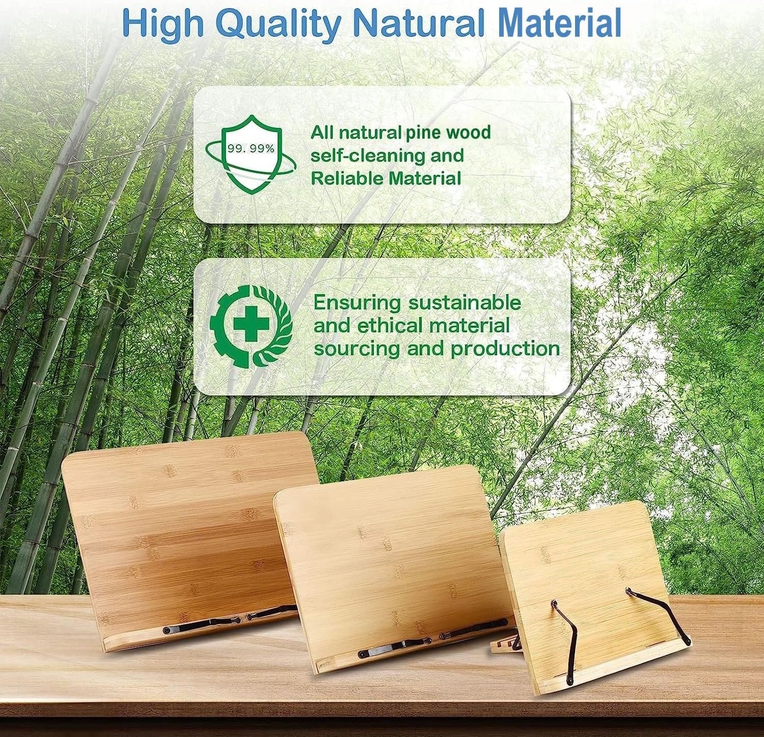 -High Quality Material The book stand is made of high quality eco peaceful pine wood, sturdy, stable and odorless. Provides you with a book stand and holder that helps you fall in love with reading.