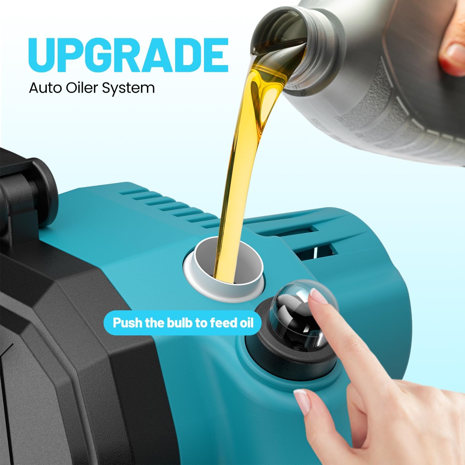 Easy to Install & One-Hand Operate: Install the cordless chainsaws according to the installation method on the picture, then adjust the tightness of the chain with the included screwdriver, plug in the battery and use it. Very suitable for women and the elderly will not feel tired after a long time of use.