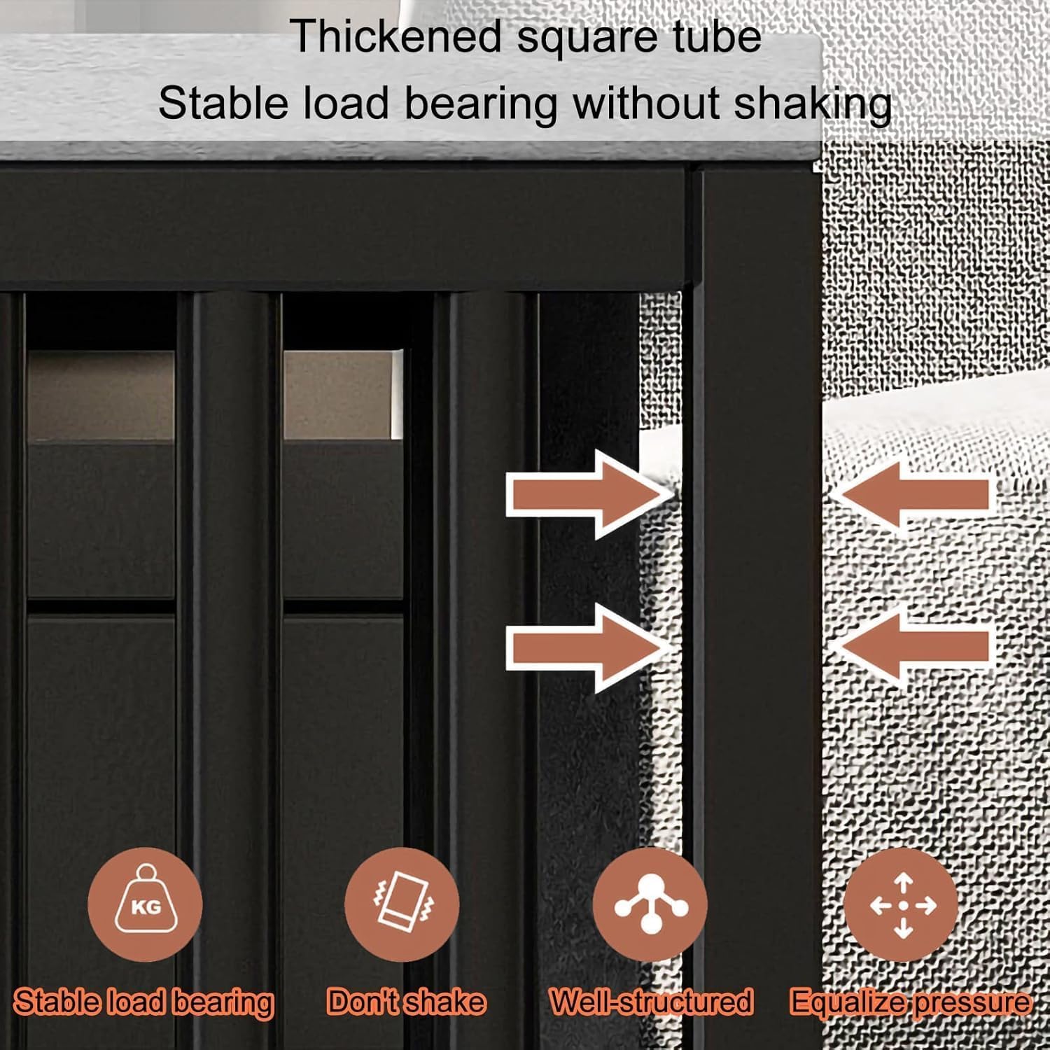 - Style: Black Steel Frame, Grey Color