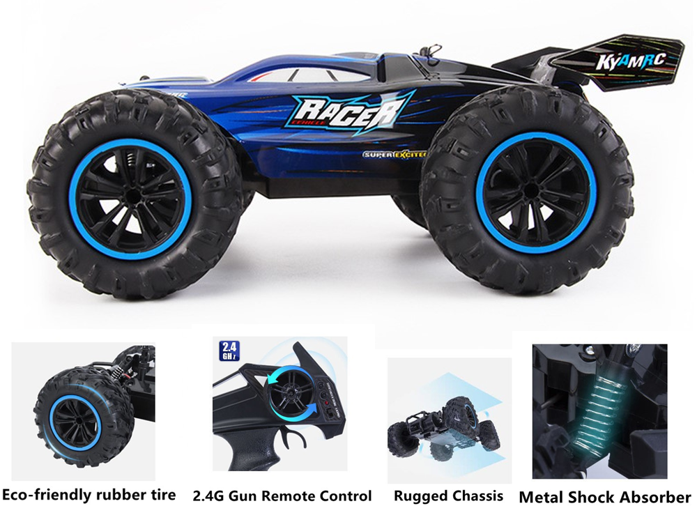 This remote control RC car is ideal for climbing, trail running, and competitive racing on dirt, grass, rocky paths, and shallow water. Suitable for beginners and enthusiasts alike.