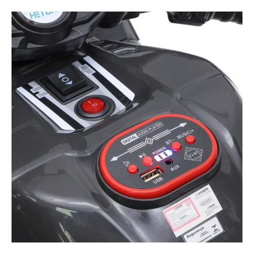 - LED headlights, horn, mirrors, and USB/AUX input for entertainment